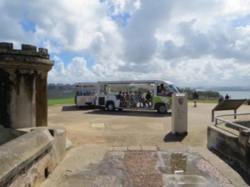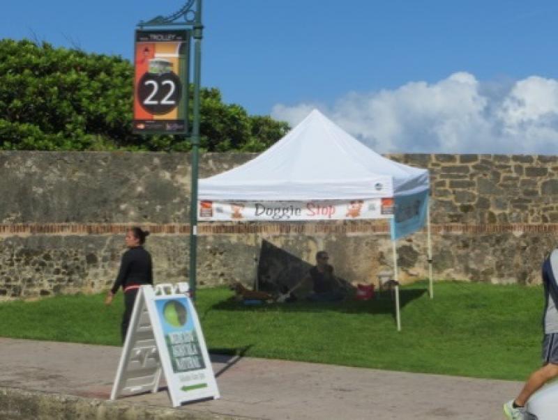 Binadan çıktıktan sonra yol üzerindeki 22 numaralı troleybüs durağında, barınaklardaki sahipsiz köpekleri, isteyenlerin gezdirmeleri için gönüllüler bir çadır yapmışlar. Ne kadar hoş… Bu arada size troleybüslerden bahsetmek istiyorum. San Juan, turistler için türlü olanaklar sunuyor ve onların tekrar buraya gelmeleri için ellerinden geleni yapıyor. Mesela bu troleybüsler 3 hat halinde devamlı olarak 26 durak üzerinde dolaşıyorlar. Her durakta inip binebilirsiniz ve ücretsiz. Tabii biz yorulduğumuz yerde bunlara bindik ve çok keyif alarak, hem de dinlenerek eski şehri turladık.