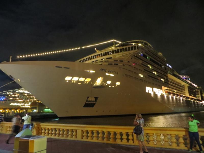 Gemimiz saat 8.00 sularında limana yanaştı ve karaya çıkış işlemlerinden sonra limana çıktık. O da ne! MSC Divina neredeyse kıyıdaki Hilton Oteli’nin bahçesine demirlemiş gibi duruyor. Gemiden indiğimiz anda kendimizi çarşıda bulduk. Ne kadar hoş… İşte gemimizin gece ve gündüz, otelin bahçesinden nasıl göründüğü!