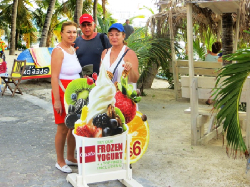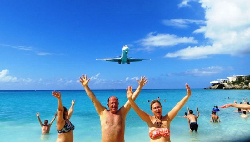 Karayip Adaları’ndan 88000 m2 büyüklükteki, 75.000 nüfuslu tropik bir ada olan ve iki devlet tarafından paylaşılmış olan St.Maarten'deyiz. Hollanda tarafında bulunan Philipsburg limanına yanaşan gemimiz, saat 8 gibi yolcularını boşaltmaya başladı. Bugünkü programımızda yine plaj var ve mayolarımız üstümüzde yola koyulduk. Burada 2 hedefimiz var. Birincisi Maho plajı ki burası havaalanı plajı olarak dünyaca ünlüdür. Hemen plajın kenarında bulunan havalimanına inen ve kalkan uçakların, gürültüsü ve inişini görmeye ve hatta iniş halindeki bir büyük uçak fotosu yakalamak buraya gelmeye değerdir. Eğer böyle bir pozu yakalayamadıysanız, buraya boşuna gelmişsiniz demektir. İkinci hedef size bu ada Tax free bir bölge olduğundan, bayağı ucuz alışverişler yapacağımızı zannediyorum. Gerçi bizim amacımız alışveriş değil ama yine de cazibeye kapılıp para harcayabiliyorsunuz. Hiç unutmuyorum 2,5 litrelik Jack Daniels viski 35$ dı. İki defa dükkana girip çıktım ama nasıl taşıyacağız diye, kilo fazlası ödemek istemediğimden, bir türlü almaya karar veremedim.
