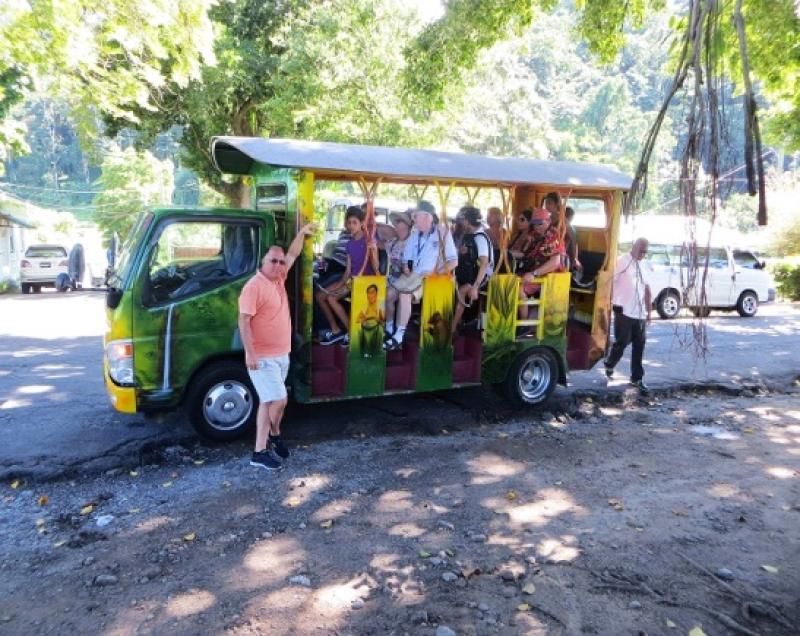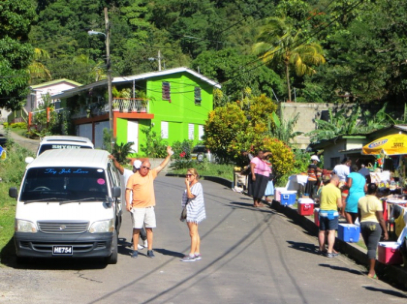 Karayip Adaları’nda şoförler birer rehber gibi yolcularına her şeyi anlatıyor ve bilgilendiriyorlar. Gezilecek yerleri gösteriyor ve fotoğraf çekilecek yerde duruyor, yerel halkın kurduğu tadımlık meyve ve içecek tezgahlarının başında da tavsiyelerde bulunuyorlar. Bu adanın gelirinin çoğu turizmden geldiği düşünülürse, bana göre bu işte artık ustalaşmışlar.