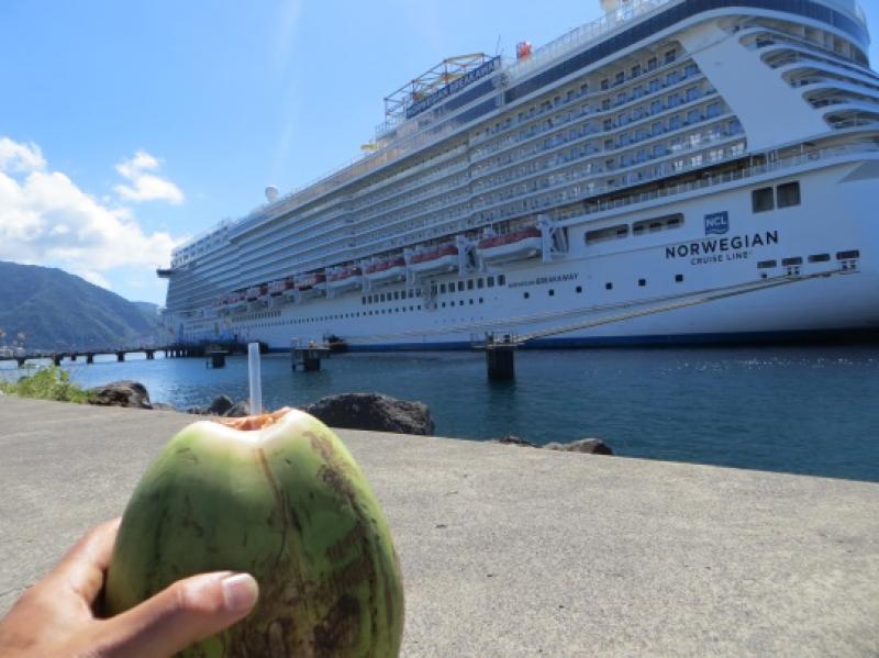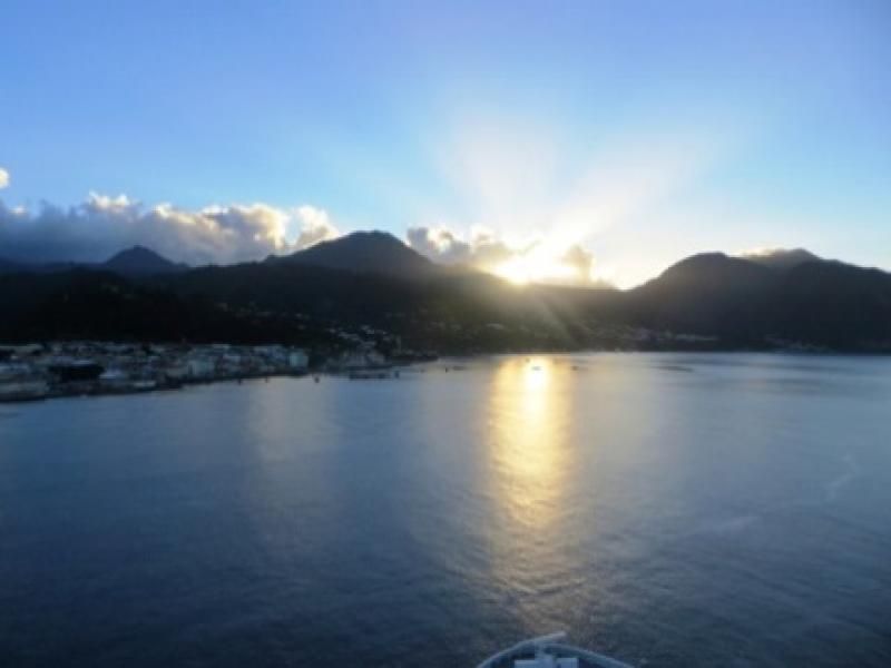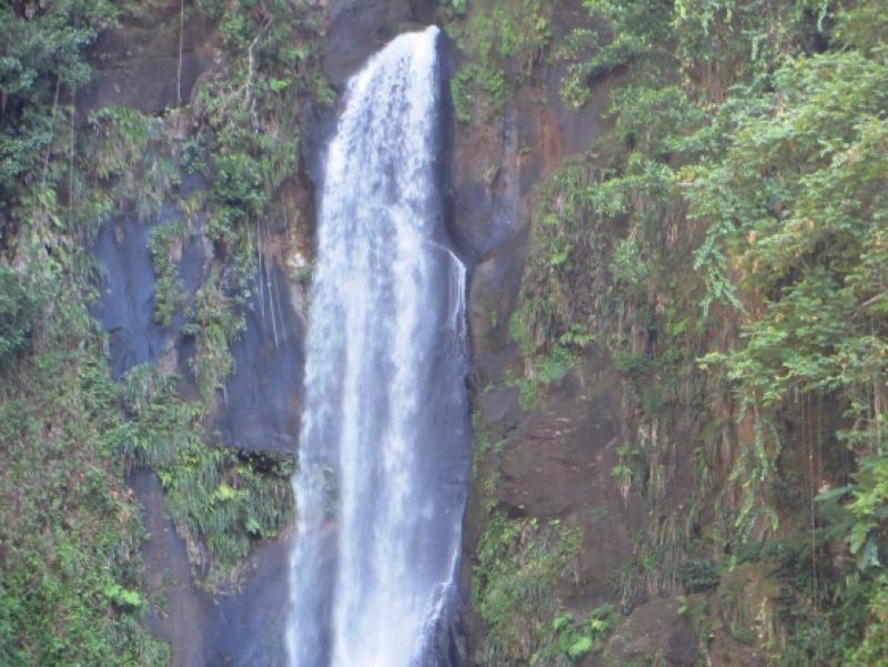 Şoförümüz klimalı aracın müziğini açtı ve direksiyonda hem adayı bir rehber gibi anlattı, hem de bizi şelaleler ve botanik parkına getirdi. Bugün eğlenceli bir gezi olacağı her halinden belli. Tabii ki biz de havaya giriyoruz ve başlıyoruz şamataya. Ne güzel! Trafalgar şelaleleri öyle ahım şahım bir şelale değil, Giriş 5$ ve bu parayı verdiğinize de değmez. Ancak orman içerisinde yapacağınız 10 dakikalık yürüyüş ve manzarası için bu parayı vermeye değer. Botanik parkı ise ücretsiz ve tepe bir yerde gayet güzel, temiz ve adadaki bitki ve ağaçları görebileceğiniz çeşitliliğe sahip. Buradan hem kasabanın panoramasını, hem de gemimiz ile birlikte güzel bir manzaranın fotoğrafını sizlere sunuyorum. Tur bitiminde de doya doya pazarları ve çarşıları dolaşacağız. İşte şimdi yine fotoğraflar ile sizi gezdiriyorum.