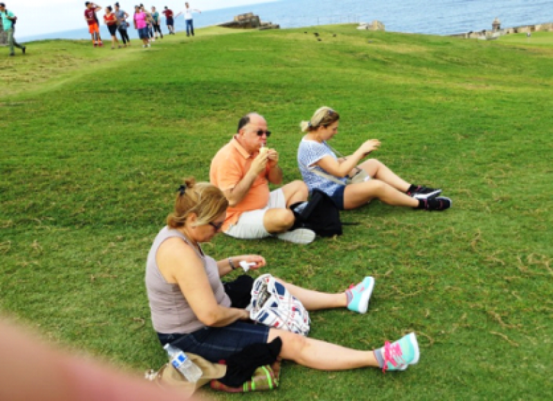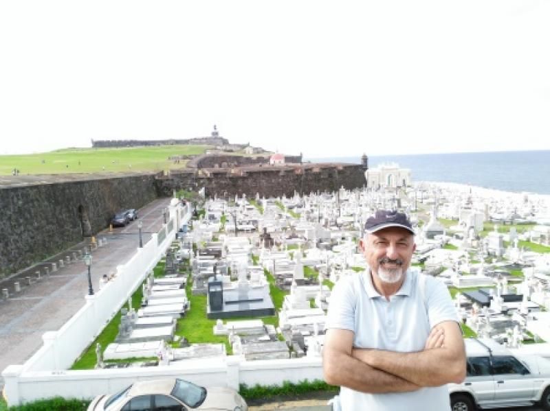 Sokaklar yürümekle aşınmaz. Doğru bir laf. Hele bu deyiş burada, San Juan'da daha da geçerli. Bu sokaklar, bu parke taşları 500 yıldır aşınmamış ve eskimemiş. Niye biliyor musunuz? Bunlar İspanyol gemilerini Avrupa’dan gelirken geminin dengesini sağlamak için kullandıkları “bazalt” safra taşları. Renkleri de bundan dolayı mavi. İspanya'dan gemiler buraya gelirken, bu taşlar sayesinde ağırlık ve denge sağlıyorlar, giderken de bunları burada bırakıp safra olarak, sömürdükleri altın ve gümüşü ülkelerine götürüyorlardı. Bakar mısınız şu taşların tarihine. Haluk yine o yeni Skechers ayakkabıları ile bu taşlarda adeta nispet yapar gibi poz veriyor. Zaten bütün gezi boyunca niye NY’da Woodbury outlet’de 10 tane daha bundan almadım diye bu ayakkabılar konuşuldu. Kaça aldığını merak ediyorsanız söyleyeyim 65$
