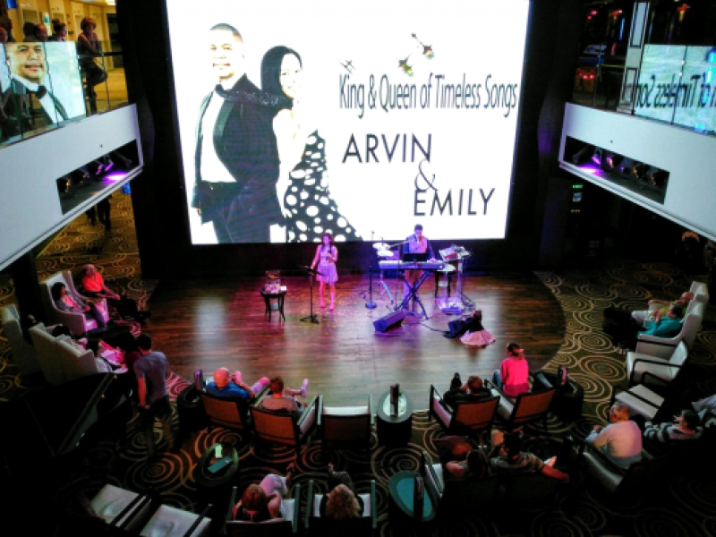 Normal gemi faaliyetlerimizin ardından akşam oluyor yine. Sizi bu sefer okyanusta bir güneş batışı fotoğrafı ile restoranınıza uğurluyorum. Saat 20’de O’Sheens Bar & Grill’de buluşalım. Bu akşam fish&chips yiyeceğiz. Sonrasında da lobbyde çalan bir ikili grup var. Arvin ve Emily'nin müziklerini dinleyeceğiz.