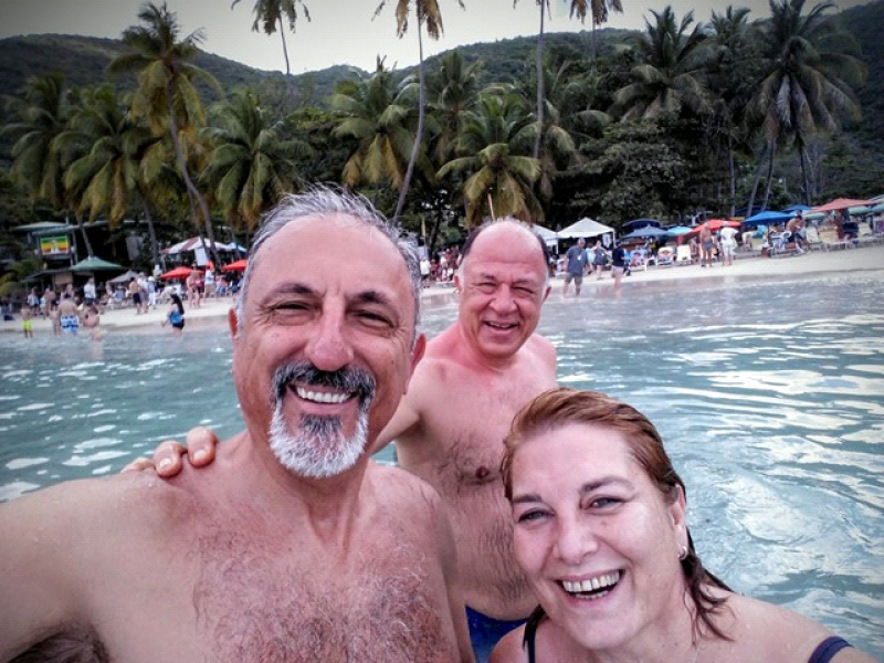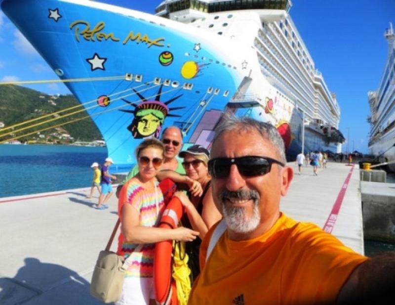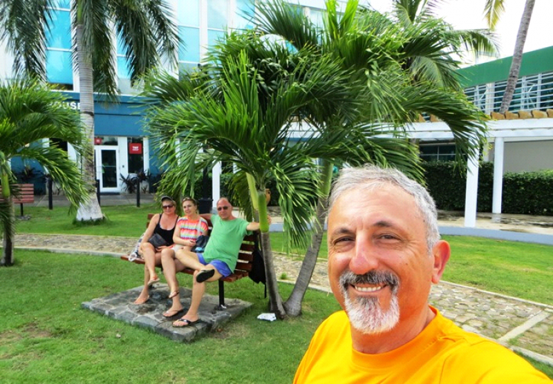 İşte yine o turkuaz sulardayız. Pırıl pırıl denizler, hafif sörf dalgaları ama sörf yapan yok. Herhalde sörfçüler için bu dalgalar yeterli değil. Aracımız molamız boyunca bizi bekledi. Sonunda da diğer 8 müşteri ile birlikte yanları açık sarı dolmuşumuz ile kasabaya döndük. Kasabada pek keşfedilecek ve görülecek yer yok. Zaten bu adalardan 2-3 tanesini tam anlamıyla gezerseniz diğerleri için de size fikir veriyor. Bence halk fakir, sömürülmüş ve hala sömürülmeye devam ediyor. Arka mahallelere girerseniz fakirliği görürsünüz. En büyük gelirleri Cruise gemileri ile gelen turistlerin yaptıkları harcamalar. Aldıkları hediyelik eşyalar. Her yerde olduğu gibi burada da o meşhur Çin malı hediyelikleri göreceksiniz. Aman dikkat buranın malı sanıp almayın. Döndüğünüzde aynı şeyi aynı fiyata oralarda $, Türkiye’de TL. etiketiyle görürseniz şaşırmayın sonra.İşte size bir dinlenme anı fotoğrafı daha.