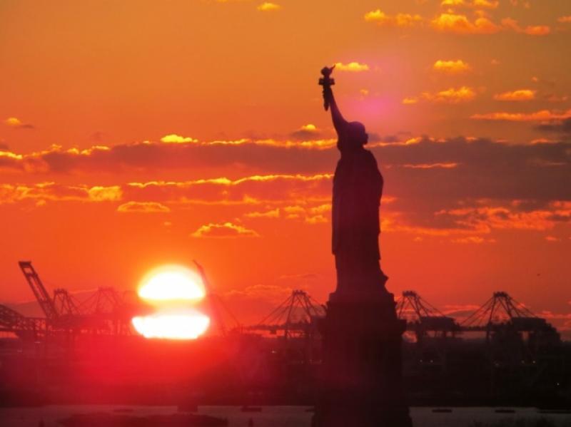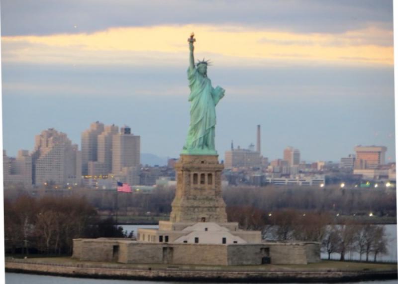 Yemek sonrası saat 4 olduğunda artık gemimizin limandan ayrılma zamanı geldiğini tüm NY'u selamlayan düdük sesinden anlıyoruz. Müthiş bir Manhattan manzarası eşliğinde Hudson nehri üzerinde yol alarak Özgürlük heykeli yanından geçerek, okyanusa doğru yol alıyoruz. İnanın geminin sancak mı yoksa iskele tarafına mı bakacağımı şaşırdım. Bir tarafta akşam güneşi vurmuş Skyline manzarası, diğer tarafta ise Özgürlük heykeli yine beklerim efendim diyen gün batımı eşliğindeki el sallaması doyumsuz bir manzara. Ama soğuk bunu bir nebze gölgeliyor. Güvertede fazla kalıp üşütmek istemem.
