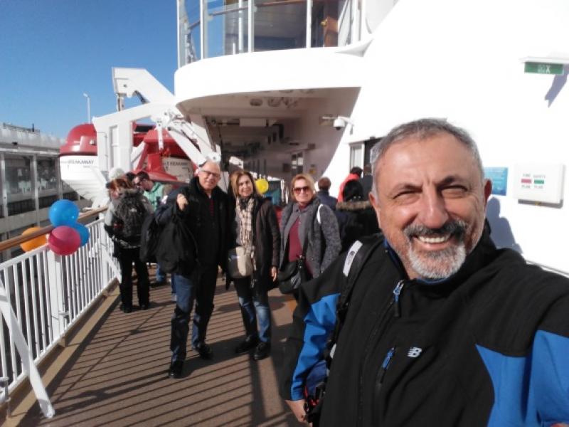 Gemimize ulaştığımızda artık herkes rahat bir nefes alıyor. Geminin o ihtişamı, hele o içeriye girişte gemi kartımın dıt diye öttüğü giriş sinyali ve nefis geminin kokusu var ya, bana her seferimde doyumsuz keyifler yaşatıyor ve büyük mutluluk veriyor. Şimdi içerideyiz ve hemen güverteye çıkıp nefis Manhattan manzarasını seyretmek istiyorum. İçim kıpır kıpır. Yeniden doğmuş gibiyim. Artık guruldayan midelerimizi bir nebze susturmak için ise hemen yolcuların ağzına layık hazırlanmış olan 15. kattaki restorana öğle yemeğine çıkıyoruz. 15.Kat. Bu katı sakın unutmayın. Bu geminin 14 günlük seyahati boyunca en çok duyacağınız ve kullanacağımız kat. !