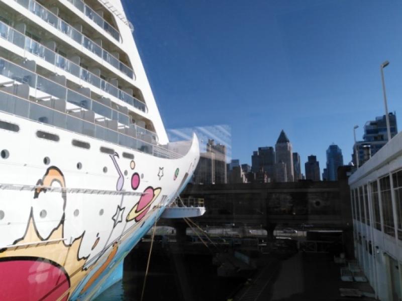 Seyahatimizin dördüncü gününde artık otelimizi büyük bir heyecan içerisinde terk ediyoruz. Aracımıza binip Manhattan Cruise limanına gidecek, gemimize kavuşacak ve esas maceramıza başlayacağız. Dolu depo ile aracı iade edeceğimizden, benzin almak için girdiğimiz New Jersey'deki benzincinin önünden defalarca geçiyoruz veeee yolumuzu kaybediyoruz, ama bu sefer de, biz sakin ve olayları yolun akışına bırakmış şanslı kişiler, kendimizi New Jersey Liberty Parkında buluyoruz. Burada muhteşem bir Manhattan manzarası ile karşılaşıyoruz. Güzel bir seyir yapıp ikiz kulelerde hayatını kaybedenlerin anısına yapılan anıtı ziyaret ediyoruz. Amerika’ya göçmelerin ilk geldiklerinde tutuldukları Ellis adası ve karantina sonrası sonra tüm Amerika’ya dağıldıkları New Jersey tren istasyonunu görüyoruz, ama restorasyon dolayısıyla bu müthiş tarihi bina kapalıydı. İyi ki kaybolmuşuz yoksa burasını göremeyecektik. Özgürlük heykeline gidiş feribotları da buradan kalkıyor. Biletler 11$. Bizim pek fazla vaktimiz olmadığından ve zaten gemi ile Özgürlük heykelinin hemen yanından geçerken doyasıya seyretme ve bol bol resim çekme fırsatımız olacağından bu etkinliği pas geçiyoruz.