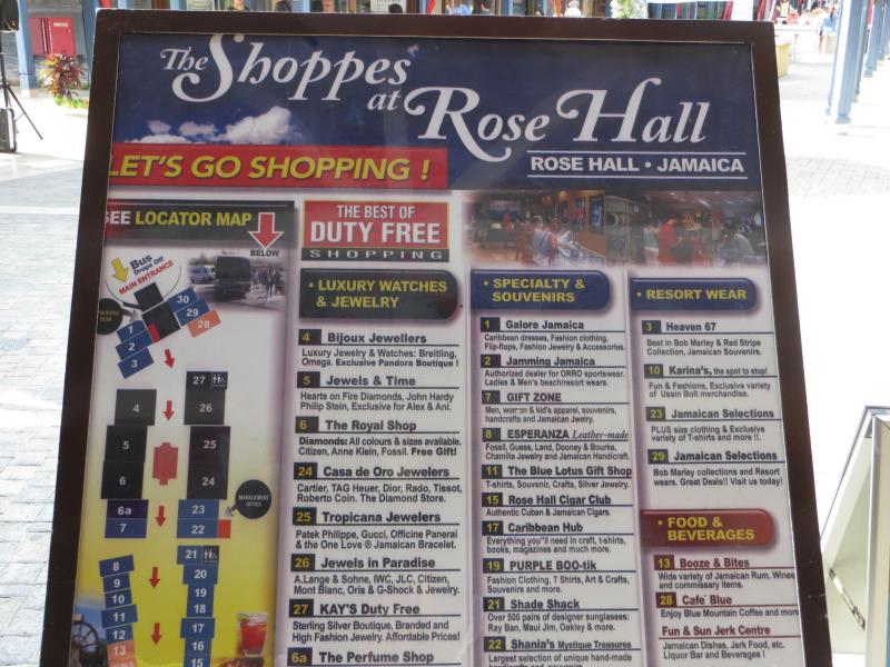 Eski bir otobüs ve sevimli bir şoför ile turumuz saat 14'te başladı. Tabii ki bizi önce turistik hediyelik eşya dükkanlarına getirdiler. Uyduruk ve pahalı tam turist tuzağı bu 2-3 yerel dükkanlardan ve esrarengiz şeyler teklif eden hanutçulardan zor kurtulduk. Sonrasında 20 km uzaklıktaki daha turistik ve modern bir çarşı olan Rose Hall alışveriş merkezine geliyoruz.