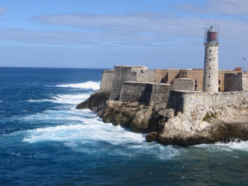 Bir gün önceki fırtına yüzünden bizden önce gelen gemiler Havana limanına yanaşamamış ve geri dönmüşler. Bizim kaptan bu konuda bayağı ısrarcı ve yetenekli çıktı. Limana giren boğazın önünde, 2 tur attı ve sonunda emniyetli bir şekilde iskeleye yanaştı. Havana limanına giriş, bir tek boğazdan yapılıyor ve bu boğazı koruyan, 16. yüzyılda yapılmış olan El Morro kalesi bütün heybeti ile sizi karşılıyor. Eğer düşmansanız buraya girmenizin imkanı yok. Dar bir boğaz ve bu yüzden de Küba’ya sefer yapan gemilerin hepsi küçük ve orta boy gemiler. Büyükler bu boğazdan zor girerler.