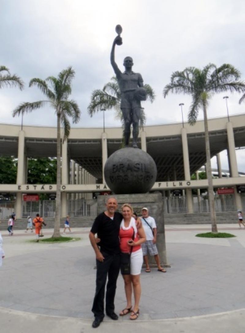 Haritadan gezdirecekleri yerleri öğreniyoruz ve İngilizce bilen Brezilyalı tur rehberimiz başlıyor anlatmaya, ben de ekibe Türkçe tercümede bulunuyorum. İlk durağımız 2014 Dünya Kupası Finali’nin oynandığı (Almanya 1 - Arjantin 0) Maracana stadyumu. İşte Almanya’nın son dünya şampiyonu olduğu o stadyum. Tabii Brezilya da bu stadda 1958 ve 1986 yıllarında dünya şampiyonu olmuş ama 1950 yılında (Brezilya 1 - Uruguay 2) açılış maçında kırdığı rekoru çoğu kimse bilmiyordur. Bakın söylüyorum 183.000’i resmi, 200 bin üstü biletsiz seyirci dahil insanı nasıl buraya sığdırabilmişler!! Bu rakam o zamanın Rio nüfusunun 10 katıymış. Buradaki futbol endüstrisini bir tahayyül edin bakalım.