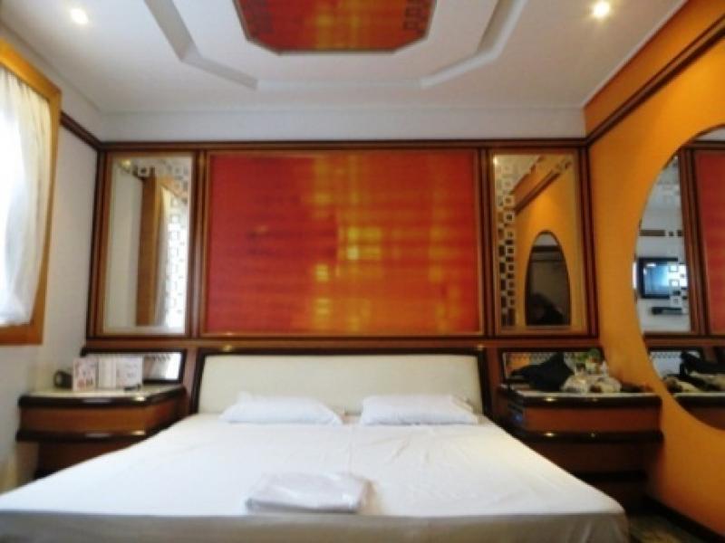 Hemen terminalin önünde taksi sırasına giriyoruz ve daha önceden ayırttığım otelin adresini şoföre vererek yola çıkıyoruz. Haritadan baktığım kadarıyla yerini biliyorum ama bu Brezilyalı başladı bizi dolaştırmaya. Sesimi çıkarmıyorum, çünkü anlaşmaya imkân yok, İngilizce ve Türkçe bilmiyor. Sonunda tahmin ettiğim yerdeki otelimize geldik, korna sesi ile otelin kepenkleri açıldı ve araç içeriye lobiye ve resepsiyona asansör dibine kadar girdi. Karanlık ve loş bir yer. Bakalım nereye geldik. Resepsiyona gittim, rezervasyon kâğıdını verdim ve ancak 30 dakikada odayı ayarlayıp elektronik anahtarı nihayet verdiler. 2. kat 211 numaralı oda. Resepsiyon odası kurşungeçirmez cam çevrili ve alttaki (banka gibi) evrak çekmecesinden haberleşiyoruz. Haydaaa! Nereye geldik biz yahu. Taksici de bu arada bekliyor ne olur ne olmaz diye bavulları indirmedi hala. Alışık yani her şey olabilir! Tamam deyince boşalttı ve hesap? 50 Real ver yeter dedi. Allahtan burada taksiler ucuz da kavga çıkmadı. Demek ki esas hesap 30 Real civarıymış işte. Asansöre bindik ve odamızı kendimiz bularak içeriye girdik. Etrafta hiç personel yok, kimsecikler yok. E bundan sonrasını anlatmayayım diyorum ama dayanamayacağım. Odaya girince önce kahvaltı masası ve bölümü, sonra yatak odası geliyor. Odanın tavan, yan duvar ve yatak arkası ayna kaplı ve karşıda da banyo ve tuvalet bölümü. Tertemiz ve hoşşş yaniii. İşte size otelin giriş ve bir de odadan fotoğrafını göstereceğim.