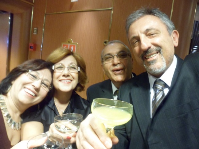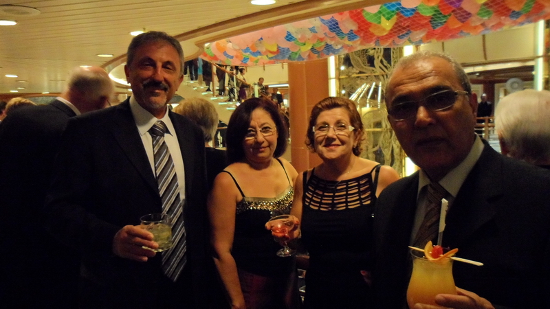 Akşam oldu gemimize döndük ve şöyle yarım saat kadar uzanarak dinlendik. Gece aktivitelerimizi öğrenmek için bültenimize göz attık. Yemekten sonra tiyatroda herzamanki gibi bir şov var ama acaba bu akşam hangi grup bizi eğlendirecek? Merak edenler haydi bizimle biraz sonra tiyatro salonuna gelsin. Yemek saatimiz de geldi. Bu akşam yemekte neler var? Hep soru işareti ve merak konusu. Çünkü bu gemide yemek yemek benim için ayrı bir ritüel. Ne yani demeyin şimdi. Her zaman oturduğunuz salonunuza geçip, bembeyaz örtülü şık bir masada iltifat ve güleryüzle karşılanmak, menüyü karıştırmak ve o gece nelerin tadına bakmak istediğinize karar vermek, karar veremeyince sormak, yahut da menüdekilerin hepsinden istemenin dayanılmaz zevkine varmak, içeceğiniz eşliğinde karşınızdaki veya masanızdaki yoldaşınızla sohbet etmenin keyfini çıkarmak, ritüel değil midir? Mesela bakın bakalım bizim masa ekibimiz ne kadar coşkulu ve güzel!