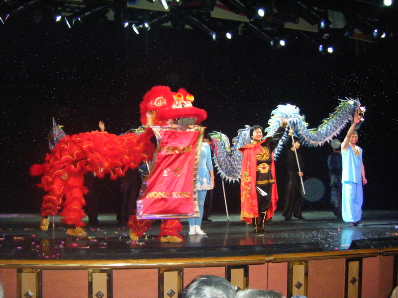 Perde araları 1-2 dakika ve bu arada sahne arkası, gayet sessiz ve uygun bir düzenle sanatçılarını hazırlıyor ve o koşuşturmada yanlışlara mahal vermiyor. Ama nasıl diyeceksiniz. Şaşırdım. Duyduğuma göre bu şovların 5 milyon Euro civarında bütçesi varmış. Sezon süresince geminin her turunda baştan tekrar ediliyor ve şirketin sezon sonundaki bir başka gemisinde prova edilmiş bir şekilde sahneleniyor. Ama gündüz vakti bazen provalara da denk geldim , inanın çok profesyoneller ve yönetmenleri yanlışlara hiç taviz vermiyor. Onun için de zorlanıyorlar, başarılı oluyorlar ve iyi de para kazanıyorlar. Siz de kendinizi Broadway veya Hollywood prodüksiyonlarının içersinde buluyor ve zevkle seyrediyorsunuz. Bu gezimizdeki gibi uzun turlarda, çeşitli sanatçılar veya gruplar turun çeşitli etaplarında bize eşlik ediyor ve performanslarını o 2-3 günlük yolculuk süresince seyircilere sunuyorlar. Mesela Şangay’da günübirlik bizimle olan Çinli akrobatların şovları sayesinde onların inanılmaz hareketlerini seyretme imkanı bulmuştuk.