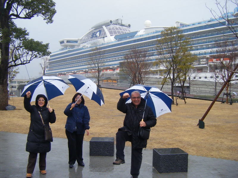 Japon Tabakoko adasını sancak tarafımızda geçtikten sonra gemimiz saat 05.30 sularında Nagasaki körfezine girdi. Meşhur Megami Ohashi köprüsünün altından geçerek saat 06.oo da hafif yağmurlu bir günde limana yanaşıyoruz. 12 derece hava sıcaklığı ve yağmur yağıyor. İçimiz karardı ama gezme umudumuzu kaybetmiyoruz. Yine nefis bir kahvaltı yaptıktan sonra hemen çıkışa yöneliyoruz ve sürprizzzz. Gemi personeli hepimize şemsiye dağıtıyor. Düşünebiliyor musunuz? Bütün şehirde bu şemsiyelerle dolaşacağız ve binlerce logolu şemsiyenin yaptığı reklam herhalde akla zarardır. Şehirde bindiğimiz tramvaydaki Japonlar, bize hem yol gösteriyorlar hem de burada inersiniz , şuradan gidersiniz diye yol tarif ederlerken güler yüzleriyle kalbimizi kazanıyorlar .İşte size enteresan 4 enstantane.