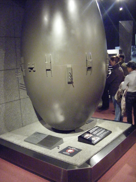 Yürüyüşümüze gemiden aldığımız Nagasaki haritasının güzergahlarını takip ederek devam ediyoruz. Şöyle yazıyor bilgi notunda. Nagasaki Japon toplumunun doğum yeri olarak kabul edilir. Sakin bir balıkçı kasabası olmasının dışında, burası Japonlarla yabancıların ilk buluştuğu yer ve Japonya’ya giriş kapısı olarak bilinmektedir. Japonya’nın en çok batılılaşmış şehri , Hıristiyanlık ve Avrupa kültürü ile kaynaşmanın yanında ekonomik bir merkez olarak da bilinir. Burası aynı zamanda II.Dünya savaşında 9 Ağustos 1945 tarihinde atılan nükleer bombanın en ağır tahribatını gören şehirlerden birisidir. Biliyorsunuz diğer bomba da bu tarihten 3 gün önce Hiroşima’ya atılmıştı. İşte size ziyaret ettiğimiz ve çok da etkilendiğim Atom Bombası Müzesinde bulunan, şişman adam isimli 21.000 ton TNT gücündeki bombanın maketini ve bombanın atıldığı anda duran saatin resmini sizler için çektim.