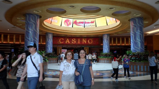 2 saatimizi burada geçirdikten sonra şimdi hedefimizde eğlence adası Sentosa var. Hemen bir taksiye biniyoruz ve 20 dakikalık yolculuktan sonra Sentosa adasına tünelden geçerek ulaşıyoruz. Şöföre bizi merkezi bir yerde indirmesini söylüyoruz. O da bizi kumarhanenin girişindeki kapalı alanda bırakıyor. Bozuk paramız yetmediğinden taksi ücretini de kredi kartımız ile yapıyoruz. Bunu da denedik yani.