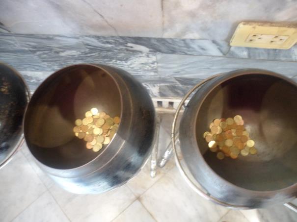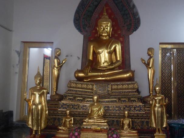 Ana tapınağa giriş 100 Baht. (61,50 TL = 1000 baht) Uzanan Buda heykelinin bulunduğu mabede girerken ayakkabılarımızı çıkarıyor ve bizim camilere girerken dikkat ettiğimiz saygılı kıyafet ile içeriye giriyoruz. İçeride duvar kenarına dizilmiş büyük kaseler var ve girişte 1$ bağışlayıp aldığınız bir kase dolusu parayı, bu büyük kaselere atarak, hem çıkardığı sesi inliyor hem de dilekte bulunuyorsunuz. Sonunda elinizdeki kasede para kalır ve sonuncuya atma şansına sahip olursanız, dilekleriniz kabul olurmuş.