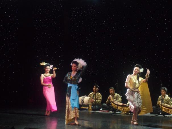 Tabii ki Bangkok’da görülecek bir sürü yer var. Mesela Theweet semtini görüp, dolaşmak ve sokak restoranlarından atıştırmak ve antikacılarından alışveriş yapmak isterdim. Mesela Pah Khlong çiçek pazarındaki o sabahın erken saatlerindeki rengareng , cıvıl cıvıl koşuşturmayı görmek isterdim. Mesela geçen gelişimde gittiğim Grand Palace ve diğer birkaç önemli Buda tapınaklarını daha ziyaret etmek isterdim. Nasip bakalım hangi sefere. Şimdi akşamüstü olduğuna göre meşhur Jumbo Restoranına gidelim ve biraz da deniz mahsulü yiyelim diyoruz. Diyoruz ama şoförümüz otoyolda çıkışı kaçırınca, geri dönmekte bu trafikte bize 1 saat kaybettireceğine göre haydi bu kadar yorulduğumuz yeter 1,5 saatlik yolumuz var diyerek gemimize dönüyoruz. İyi ki gemimize dönmüşüz. Bir de ne görelim. Tiyatro salonunda Thai dansı ve Tayland folklor gösterisi var. Tabii gemimiz şehre çıkmayanları da düşünmüş. Bangkok’dan gelen yerel dansçılar çok güzel bir gösteri sunuyorlar.