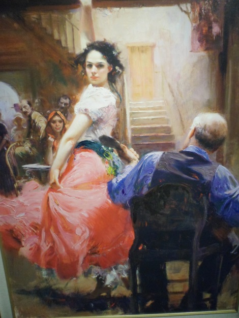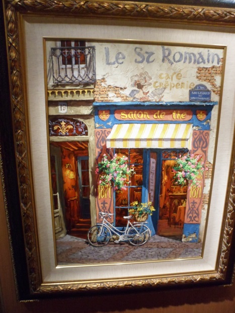 Günlük dinlenme ve aktivitelerimize devam ediyoruz. Güneşlenmek için güzel bir gün. Bu günün programına bakıyorum. Oooo! tablo müzayedesi var. Bu geminin bir özelliği de içerisinde bir resim galerisi barındırmasıdır. Edindiğim bilgiye göre bu tabloların hepsi orijinal olup, dünyanın çeşitli ülkelerindeki sanatçılara ait imiş. İleride değer kazanacak genç ve bu yüzden tabloları ucuz olan ressamları seçiyorlar ve onların tablolarını sergiliyorlarmış. Tabii bilinen sanatçıların ki de var ama bu müzayede de gençlerinki epey ilgi görüyor belli. Bu sergi salonunu gezen ve beğendiği tabloları not eden yolcular var. İşte size şimdi bu galerinin ve tablolardan beğendiğim birkaç eserin fotoğraflarını çektim.