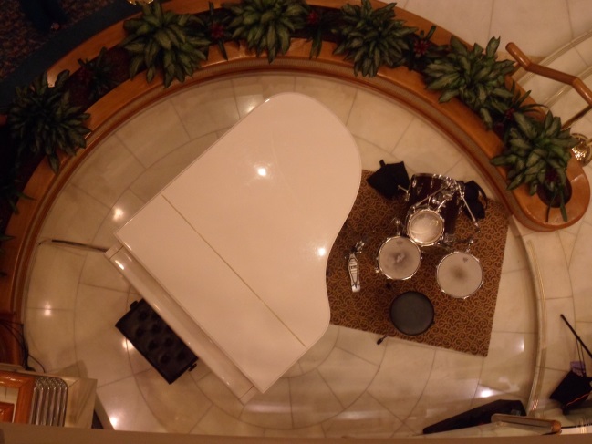 Bu arada size odamızı, meşhur buluşma noktamız beyaz piyanoyu ve gemimizin holünde kaptanın konuşmasını dinleyen yolcuları görüyorsunuz. Gelelim yemeklere. Tabii ki yemeklerde özeldi o gece.