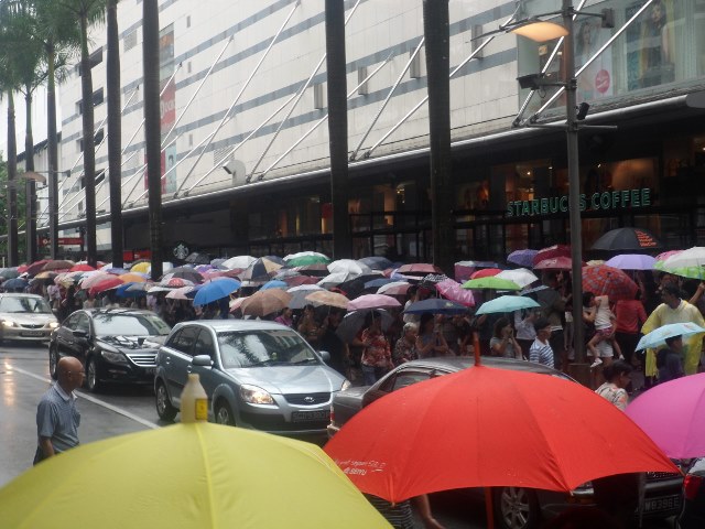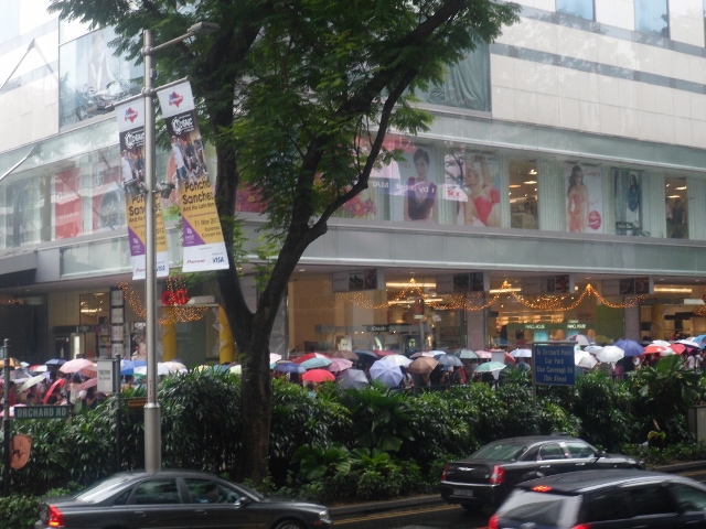 Otobüsümüze biniyor ve otelimize saat 12.00 de varmış oluyoruz. Hemen odalarımıza yerleşip Singapur’u keşfetmemiz lazım. Ne de olsa yarın gece yarısına kadar vaktimiz var. Uçağımız İstanbul için saat 23.50 de kalkacak. 4 kişilik ekibimle saat 13 de buluşuyoruz ve önce otelimizin etrafını keşfe çıkıyoruz. 15 dakikalık yürüyüşten sonra meşhur Orchard Bulvarına ulaşıyoruz. Hafif yağmur çiselemeye başladı ama olsun bizi durduramaz. AVM’lerin ve içerlerinde de marka mağazaların bulunduğu bu bulvarda dikkatimizi bir kuyruk çekiyor. İnsanlar sakin sakin kaldırımlara taşmış belli ki bir mağazanın açılmasını bekliyorlar. Mesele şu efendim. O güne mahsus mağaza %20 indirim yapmış ve içeriye belli sayıda insan alındığı için, kapıda kuyruk var. Bir taraftan da yağmur yağıyor. Bu şemsiyelerle bekleyiş manzarasını görmeniz lazım.