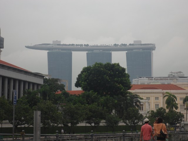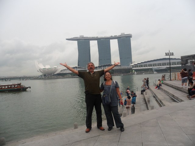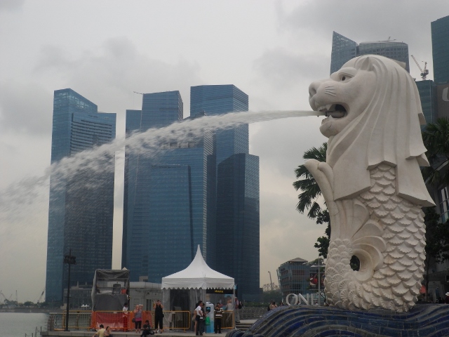 Şimdi yolun sonuna doğru yaklaştık. Niye yolun sonu. Çünkü meşhur Marina Bay Sands Oteli, Singapur’un simgesi kafası aslan, gövdesi balık ve dalgalar üzerinde duran Merlion heykeli ve fıskiyesi altında poz vermeden olmazdı. Marina Bay Sands Oteli tepesinde gemi şeklindeki 3 blok’u birbirine bağlayan barı ve havuzu meşhurdur. Havuzuna girerseniz o gördüğünüz geminin içersinde yüzüyor olursunuz. Bu otel aynı zamanda altında Singapur’un en büyük kumarhanesini barındırıyormuş. 2010 yılındaki açılışında 8 milyar dolar olan maliyeti ilk 3 senede çıkmış. Peh peh peh..