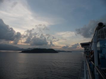 Laem Chabang limanına girmeden önce geminin sancak tarafından görülebilecek olan Ko Khram ve Ko Lan adalarını geçtik. Saat 7.00 de de limana yanaştık. Hava sıcaklığı bugün 32-33 derecelerde olacak ve sabah serinliği erken kalkmış olmamıza rağmen hala hoş bir meltem olarak yüzlerimize vuruyor. Güvertede hala ışıklar yanıyor ve biz kahvaltıya bir türlü inemiyoruz. Bu erken Tayland sabahında kendimizi tatlı romantizmin kollarına atmış durumdayız.