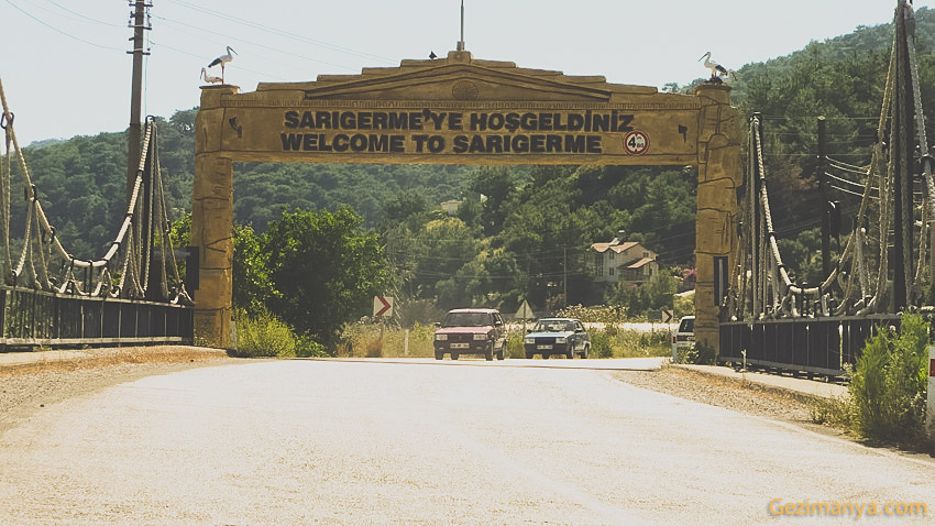 Sarıgerme yolu için GPS kullandık ve oldukça işe yaradı. Yaklaşık 20 km uzaklıkta olan Sarıgerme’ye gitmeyi, kumsallarının güzel olduğunu duyunca iki kere düşünmedik. Yollar gene çok güzeldi nar tarlaları, dağlar, tepeler ferah ferah gittik. Tabii arka yoldan gitmemizin de bu konuda etkisi var. Vardığımız yer Dalyan’dan daha güzel değildi.