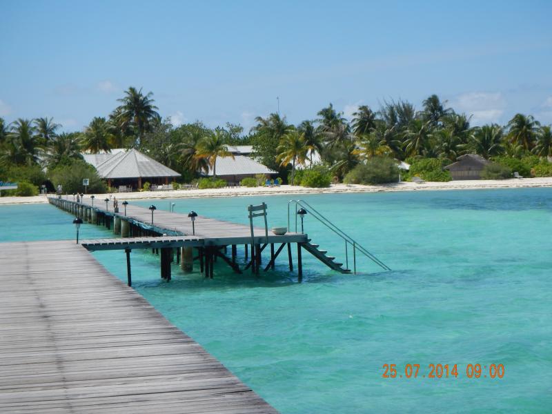 Maldivlerdeki tatil köyleri, üzerinde kuruldukları adanın ismiyle anılıyor. Havaalanından adamıza sürat tekneleriyle gitmek zorundayız. Yaklaşık 1 saat süren yolculuğumuzda okyanusun dalgalarıyla da tanışma fırsatı bulduk. Ama bu sizi korkutmasın, gayet güvenliydi. Sadece okyanus ile deniz arasındaki farkı daha iyi hissediyorsunuz. Yolculuk boyunca yanlarından geçtiğimiz adalardaki manzaralar ve uçan balıkların size eşlik etmeleri sıkılmanızı engelliyor. Adaların etrafındaki resiflere çarpan dalgaların oluşturduğu beyaz görüntü harika!