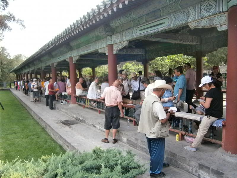 Cennet Tapınağı,geleneksel Çin mimarisine göre, 15. yüzyılda dairesel olarak ve tamamen ahşaptan inşa edilmiş bir tapınak. Yapılırken hiç çivi kullanılmamıştır. Tapınağa doğru yaptığımız yürüyüş sırasında, üstü kapalı bir yoldan geçerken kağıt ve taşlarla çeşitli oyunlar oynayan Çinlilere rastlıyoruz.