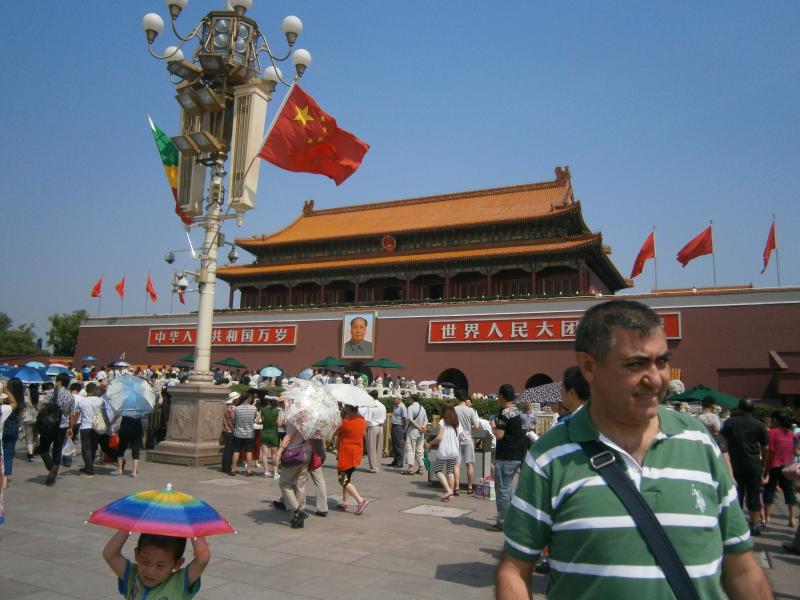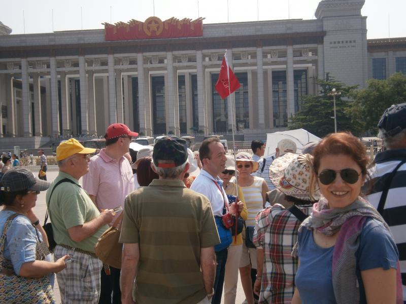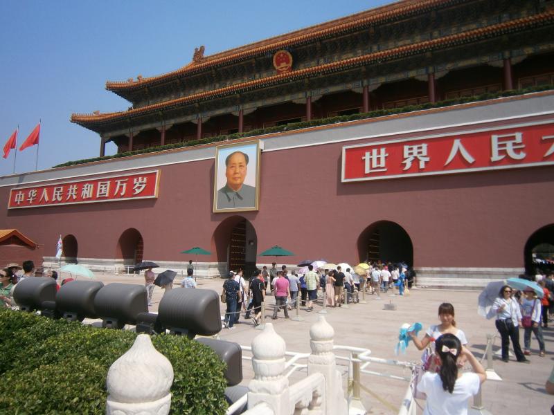 Şu ana kadar gördüğünüz bütün meydanları bir kenara koyun; çünkü Tiananmen Meydanı dünyanın en büyük meydanı. Meydanda Mao’nun Anıt Mezarı ve büyük reklam tabelaları ilgimizi çekiyor.