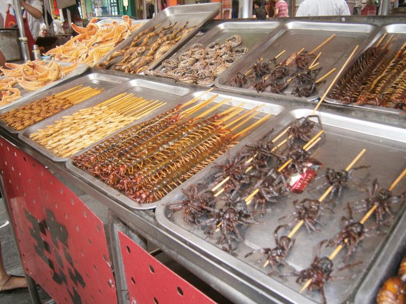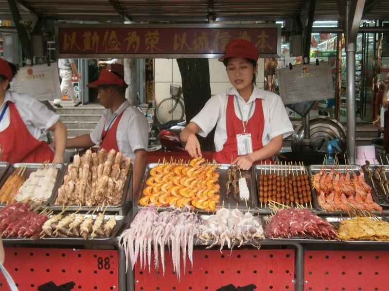 Pekin’in trafiğe kapalı veya açık çok sayıda ilgi çeken caddelerini mutlaka turlayın. Sayısız büyük mağazalar ve alışveriş merkezleri var ve daima çok kalabalık. Burada bizi hayretlere düşüren yemekler satan tezgahlar görüyoruz. Bunları fotoğraflamadan geçemezdik.