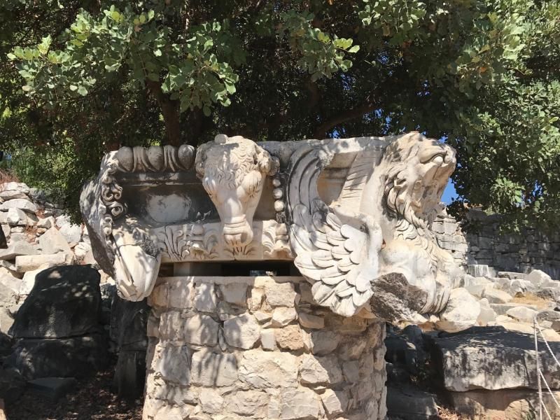 Antik şehir denizden uzak yerleşim yerinin dışında bir alanda idi. Arabamızı park yerine park ettikten sonra yürüyerek harabelere vardık zaten Apollon Tapınağı tüm görkemiyle uzak mesafeden de görünüyordu. Çarpık yapılaşmayı burada da gördük.