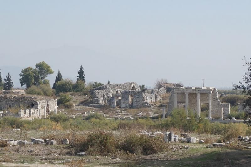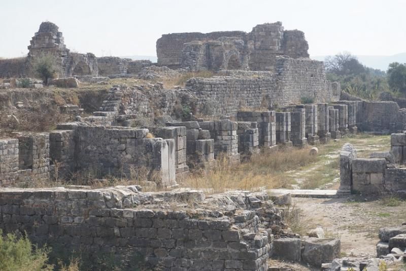 Büyük mezar yapıları, Bizans Kalesi ve kapısı, Helenistik ve Roma Heronları, Aziz Mihail ve Dionysos Tapınağı, 14. yüzyıla ait Kırk Merdivenli Cami ve Türk Hamamı, Liman Anıtı ve Liman Galerisi (Stoa), Kuzey Market, Liman Kapısı, açık hava tapınağı Delphinion, Kiosk ve Han, Anıtsal Kent Çeşmesi (nymphaion), Büyük Kilise, Senato Binası (Bouleuterion), İlyas Bey Camii ve Hamamı, Roma dönemindeki en büyük hamam Faustina Hamamı gibi oldukça fazla kalıntı var.