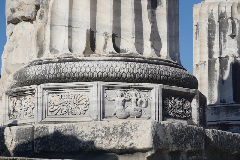 Kent kapısından girdiğimizde tapınağın ve her parçasının devasa boyutlarının yarattığı şaşkınlık, sütun tabanları, başlıkları ve üzerindeki süslemelerin güzellikleriyle hayranlığa dönüşüyor.