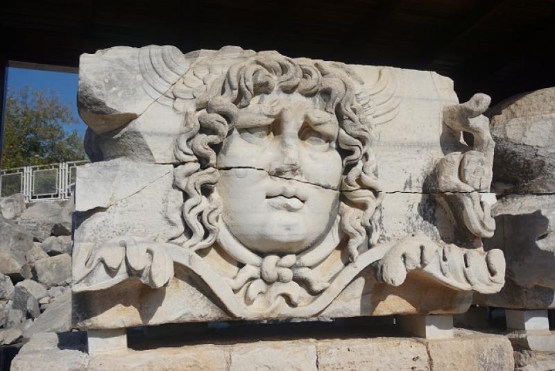 Ören yerine girer girmez bizi önce Didim’in en önemli sembollerinden MEDUSA karşılıyor.