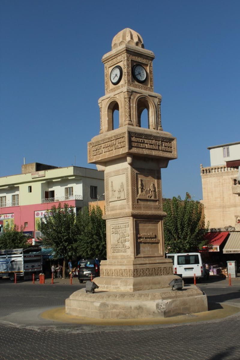 Evet artık Midyat’ın tam merkezindeyiz. Ortada bir saat kulaesi ve kulenin alt tarafına kalker taşın üzerine kazınmış yön tabelaları var.