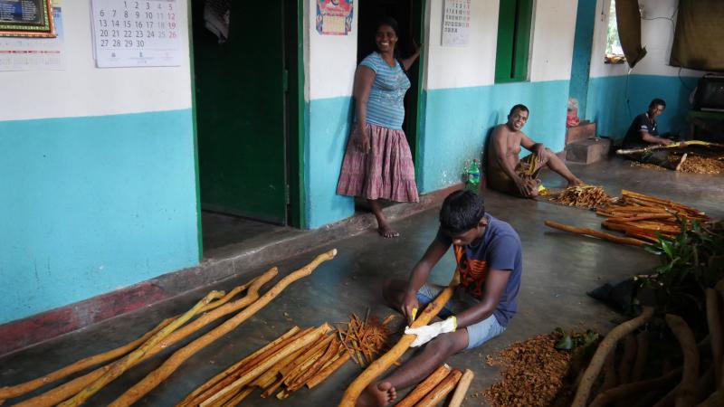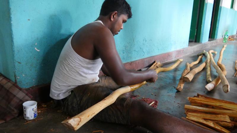 Lagün gezimizin ortalarında kıyıya çıkıyor, kısa bir yürüyüş yapıyoruz. Sri Lanka çay üretimin gibi tarçın üretiminde de önemli bir rol sahibi. Sri Lanka tek başına dünya tarçın ihtiyacının ciddi bir kısmını karşılıyor. İşte biz de bu kısa yürüyüş sonunda tarçın üretim atölyesine geldik.