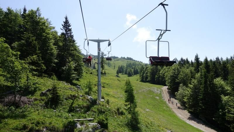 Buradan tekrar başka bir teleferiğe binerek bu kez açık havada 1.600 metrelere kadar çıktık. Buraya aynı zamanda popüler dağ yollarından da ulaşım bulunuyor. Özellikle yaz aylarında buraya yürüyüş yapmak çok popüler. Kış aylarındaysa burası çok tercih edilen bir kayak merkezine dönüşüyor. Yani yine Kranska gora gibi burası da yaz ve kış doğa ve doğa sporlarını sevenler için bir cazibe merkezi.