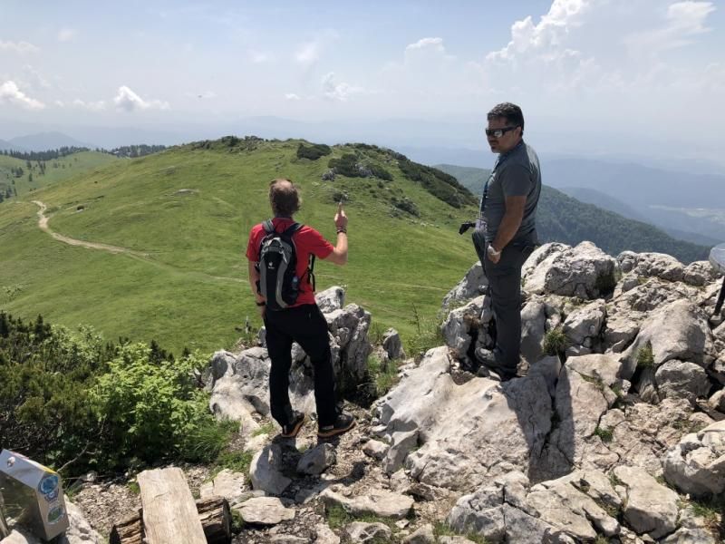 Kamnik-Savinja Alpleri’nin bir parçası olan bu yüksek dağ yaylasına çıkmak için bu seyahatimizde bize eşlik edecek olan rehberimiz Matej’le buluştuk. Ama ne buluşma :)… Bir önceki durağımız olan Kranska gora bölgesinde sabah erken bisiklet sürüşü ve zipline sonrası buluşma saatimize yetişmek için epey stres yaşadık. Çünkü Kamnik’ten tepeye yaylaya çıkan teleferik saat başı çalışıyor ve birini kaçırırsak burada gün batımını da kaçırabiliriz. Neyse ki arabadayken Matej’i aradık ve teleferiği 5-10 dakika bekletti, yetiştik :).