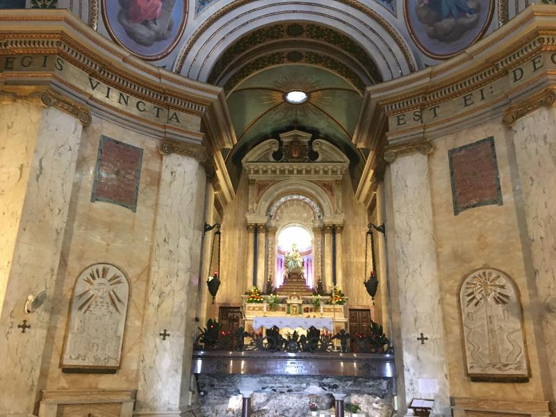 Aynı zamanda teleferik yolculuğundan önce Elijah's Cave'i de ziyaret edebilirsiniz. Stella Maris Manastırı'na ulaştıktan sonra açık söylemek gerekir ise benim için tam bir hayal kırıklığıydı. Manastır Haçlı Seferi’ne giden Fransız bir asker tarafından 12. yüzyılda yapılmış ama manastırın neredeyse her tarafı turistik geziye kapalıydı. Yalnızca girişindeki küçük kilisesine girebiliyordunuz. Stella Maris Kilisesi’nin içi şu şekilde.