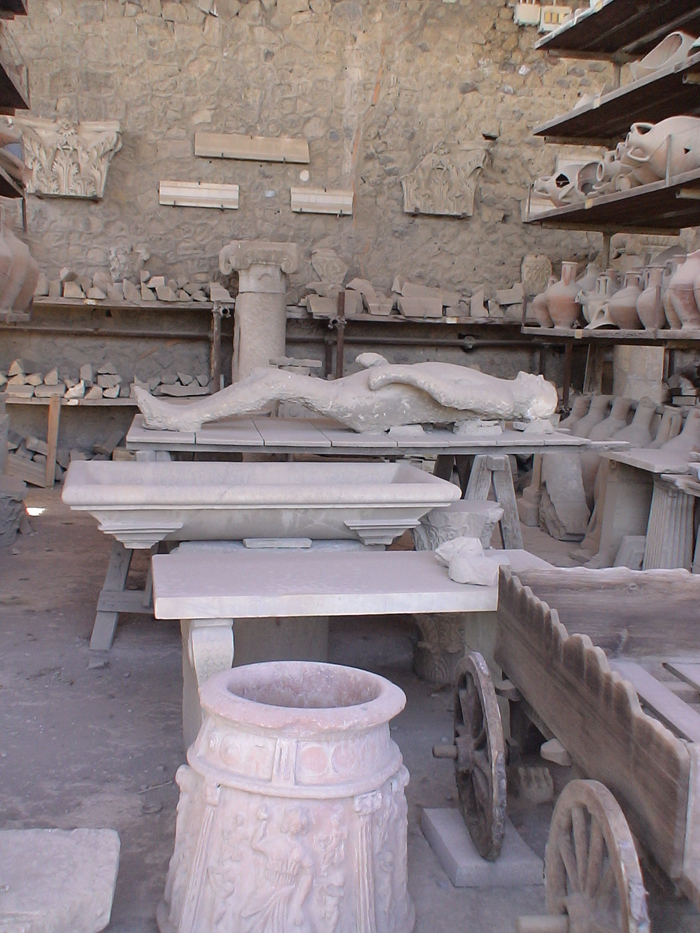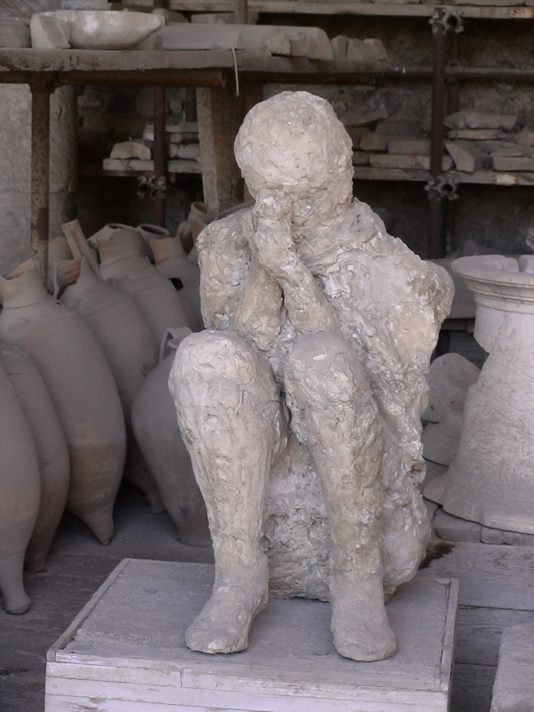 Pompei'liler taş olarak çıkarıldıkları zaman, ölüm anında ne yapıyorlarsa o halde bulunmuşlar. Kimi alışveriş yaparken, kimi çocuğu ile oyun oynarken, kimi dua ederken lavların arasında kalmışlar.