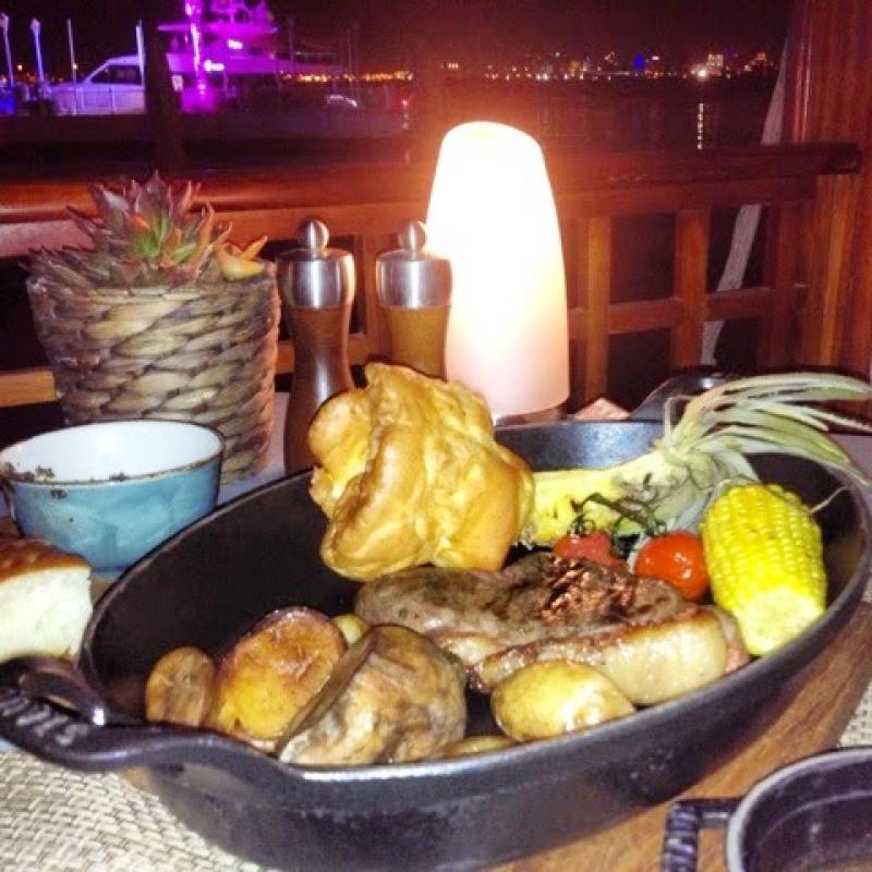 Doha'da Four Seasons Otel'in kumsalında denize nazır bir et restoranı Pool Grill... Ambiyans muhteşem ama fiyatlar Doha standartlarına göre bile oldukça pahalı. Menüde sadece dry aged steak çeşitleri var. İki kişi bir ana yemek paylaşıyoruz. Tek bir porsiyonu 220 Katar dinarı.
