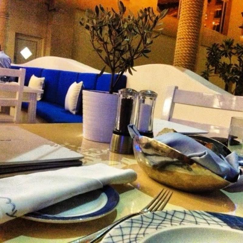 Sanırım benim gen haritamın bir yerine bir Yunan geni karışmış. Hangi ülkede olursak olalım Yunan restoranı varsa aklım ilk ona gidiyor. Doha'da da açık hava opsiyonu olan nadir restoranlar arasında bir Yunan restoranı görünce hiç kaçırmıyoruz ve ilk akşamımızda soluğu Intercontinental Otel'in havuz başı restoranı Mykonos'ta alıyoruz. Ortam tam yaz aylarında Yunan Adaları’nda bir tavern ortamı.