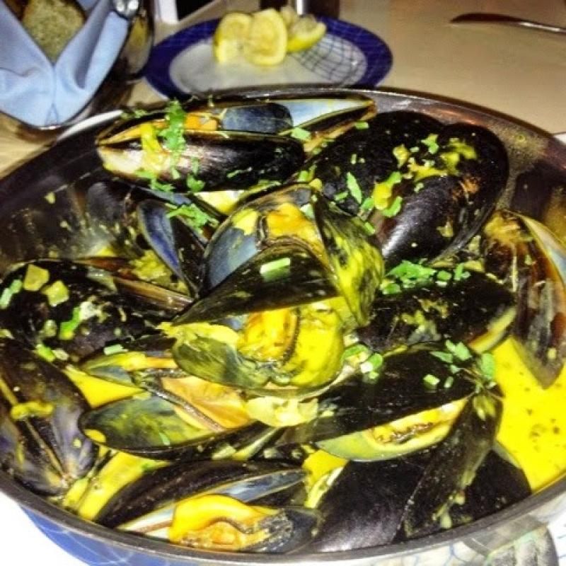 Midyeye beyaz şarap, Grek salataya uzo yakışır. Beyaz şarabı tercih ediyoruz. Midyenin kendisinin de kremalı safranlı sosunun da lezzeti muhteşem. Sevindirik oluyoruz. Bir midyenin sosuna, bir Grek salatadaki mis kokulu zeytinyağına ekmek bana bana tabakları sıyırıyoruz. Başka da bir şey sipariş etmiyoruz : )