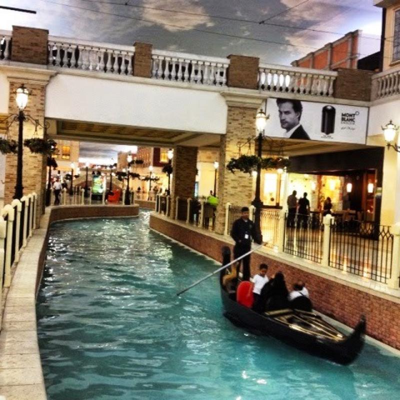 Doha'da Venedik temalı, açık hava dekorlu Villagio isimli alışveriş merkezinde bir Fransız...