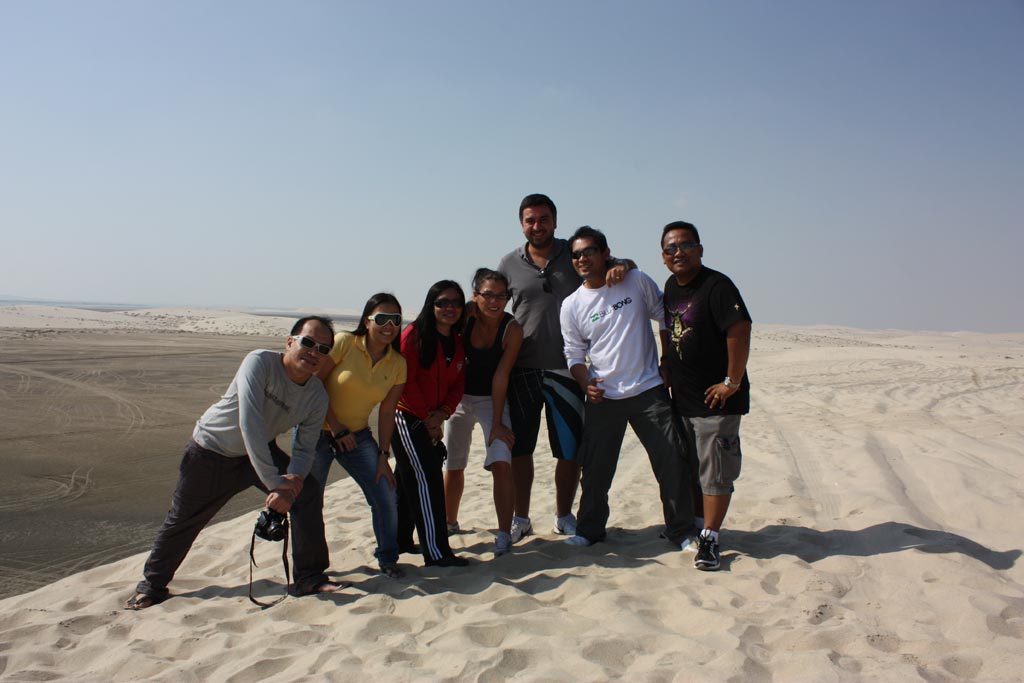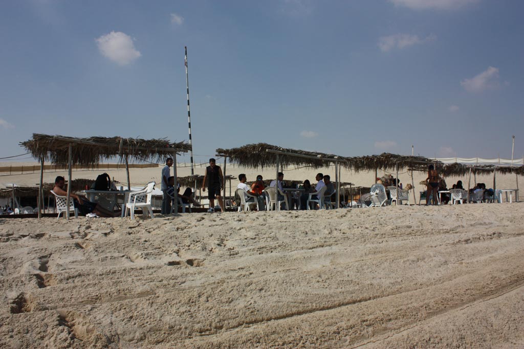 Yaklaşık 1-1,5 saat gittikten sonra yüksek bir kum tepesinin üzerinde duruyoruz. Eğimi neredeyse 80 derece aşağısı göl. Karşımız ise Suudi Arabistan. Fotoğraf molası sonrası bir park alanına gidiyoruz... “Adventure Park” Önümüz deniz arkamız çöl. Burası muhteşem bir yer işte... Deniz çölün uzantısında olduğundan tek bir taş yok. Çevrede 1-2 tane bedevi çadırı var. Saat 14:00 gibi burada açık büfe yemek yiyeceğiz. Bu sırada deniz ve güneşin keyfini çıkartıyoruz. Denizde çok sayıda yengeç var. Hatta kıyıya kadar çıkmış Vatos balığı bile gördük. İsteyenler için çok çeşitli aktiviteler de mevcut. Develere binmek, masa tenisi, sandboarding,... Burası muhteşem bir yer. Güneşlendiğimiz kumsalda önümüzden jeepler ve ATV’ler bir tekerleri suda şov yaparcasına geçiyorlar.