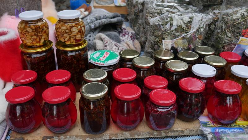 Dombay merkezden teleferiğe bineceğiniz ilk nokta ve çevresinde çok sayıda el ürünü satan tezgahlar ve ufak, oldukça düzenli bir pazar alanı göreceksiniz. Burada el örmesi çoraklar, şapkalar eldivenler, şallar, dağdaki otlardan toplanmış bitki çayları, kozalak reçelleri ve ballar gibi pek çok yöresel ürün de satılıyor.