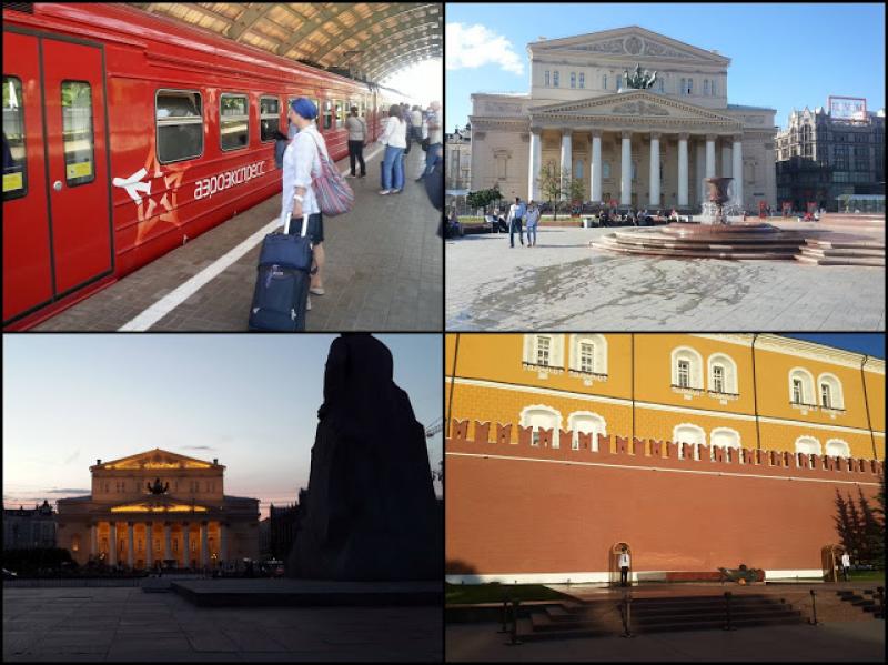 1. Aeroexpres treni, 2-3.Bolşoy Tiyatrosunundan görünüm, 4.Sönmeyen ateş