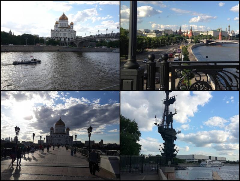 Kurtarici İsa Katedrali'nin orijinali aslında Stalin tarafından 1946 yılında yıkılmış. Aslında o zaman komünistlik rejimi halkın dindarlığını ortadan kaldırmak için o yılda mevcut 48.000 kiliseden çoğunu yıkmış ve sadece 4 bin kiliseyi ayakta bırakmışlar. bu alana da komünistliğin sembolü olacak bir bina tasarlamışlar çok ihtişamlı ama sanırım muvaffak olamamışlar. Stalinin havaya uçurduğu bu kilise 1994 li yıllarda 6 ay gibi kısa bir sürede aslına uygun olarak tekrar yapılmış. Biz gittiğimizde içerisi kapalıydı giremedik ama görülebilir güzel demişlerdi. Kurtarıcı İsa Katedralinin hemen arkasındaki köprüden (bara geçmeden bu köprü üzerinde bol bol fotoğraf çektirin çünkü Rusya'nın en güzel manzaralarından biri bu köprü üzerinde) geçerek meşhur Moskova Nehri ve Kurtarıcı İsa Katedrali manzaralı Strelka Bara çıktık. Manzaraya karşı karpuz suyu içecektik ama yarım saat oturduk yoğunluktan kimse ilgilenmeyince manzarayı izleyip nehir kenarından Rus Donanmasının 1000 yılı şerefine yaptırılan Deli Petronun bir geminin üzerinde durduğu heykele doğru yürüdük. Bu heykel dünyada ilk on ucube heykel arasında yer alıyormuş. Heykel 100 mt 1000 ton imiş.